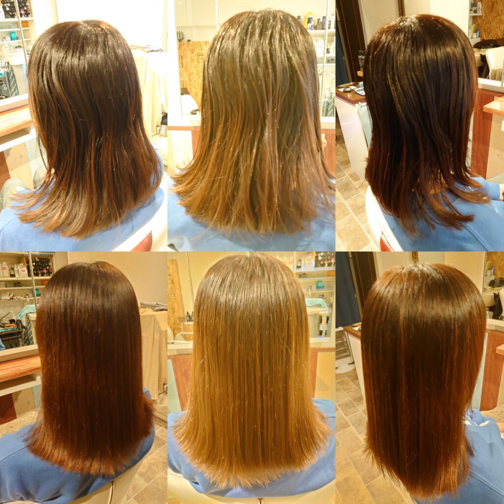 驚くほど柔らかくしなやかに仕上がり、まるでストレートパーマをかけていないかのような質感になります。